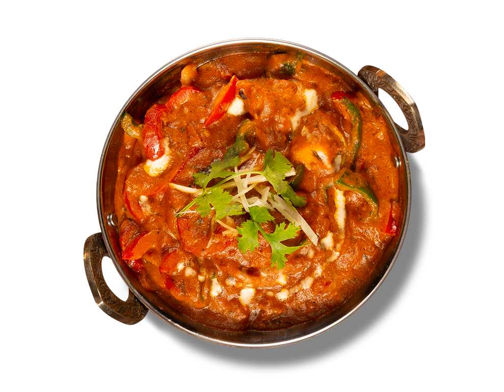 Stir fried tandoori chicken in capsicum & onion with silky tomato sauce.